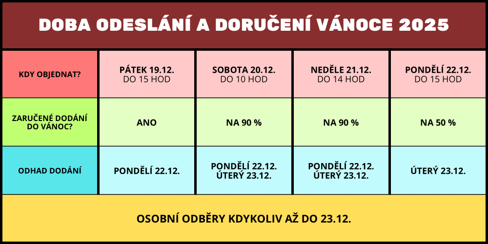 NÁMI ZARUČENÝ TERMÍN JE PŘI ODESLÁNÍ V PÁTEK 19.12.2025.